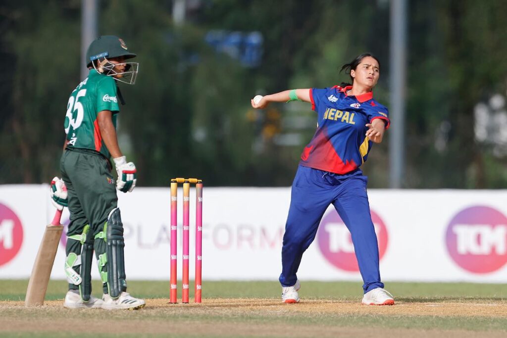 त्यसअघि टस हारेर पहिले ब्याटिङको निम्तो पाएको नेपालका लागि ओपनर सावित्री धामीले सर्वाधिक ११ रन जोडिन् । कप्तान पूजा महतोले नौ र एलिशा यादवले आठ रन बनाए । बङ्गलादेशका फर्जाना इस्मिन, अनिशा अख्तर सोबा, फहोमिदा चोया र हबिबा इस्लामले समान एक÷एक विकेट लिए ।