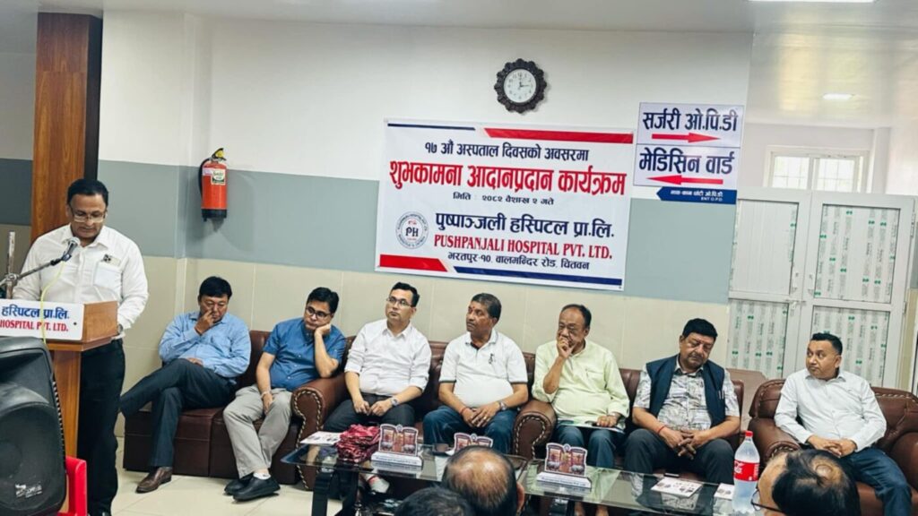 अस्पतालका वरिष्ठ फिजिसियन डाक्टर भोजराज अधिकारीले नयांँ बर्ष संँगै अस्पताल १७ बर्ष पुगेको अवसरमा सय बेड सहित सबै भौतिक संरचना सहित प्रविधियुक्त भएको जानकारी दिनुभयो । चितवनमै दक्ष न्युरोलोजिष्ट सहित अस्पतालले न्यूरो सर्जन सेवा शुरु गरिएको डा. अधिकारीले बताउनु भयो । दक्ष चिकित्सक, अत्यधुनिक प्रविधि तथा सम्पुर्ण सेवा सहित पुष्पाञ्जली अस्पताल चितवनको नमुना अस्पताल भएको डा. अधिकारीको भनाई छ । जनतासंँग अस्पताल कार्यक्रम अन्तर्गत हालसम्म ४०० सय भन्दा बढी ठाउंँमा स्वास्थ्य शिविरको आयोजना गरिसकिएको अस्पतालले जनाएको छ ।
